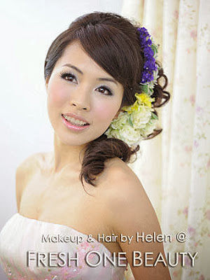 這個造型用了鮮花配襯, 感覺甜美, 是很多新娘子喜歡的造型呢~